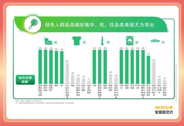 而绿色消费人群则是指在“吃穿住用行”五大生活场景中,将“绿色元素”贯穿在商品流通各环节中的消费者,以“住”这一场景为例,绿色消费者往往更关注家电的能耗,家装的环保性等。