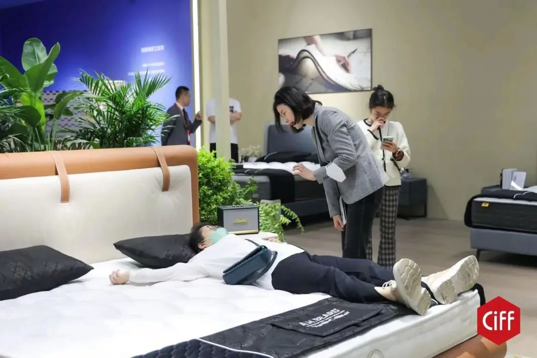 睡眠品类同样占据了重要位置,本次展会设置3个睡眠生活馆,以3万平米、超百家企业的超强规模,持续深耕睡眠题材领域,并更加聚焦智能睡眠及睡眠生态。各种智能睡眠新品吸引了不少观众驻足或者进行体验,展现出强大的消费活力。