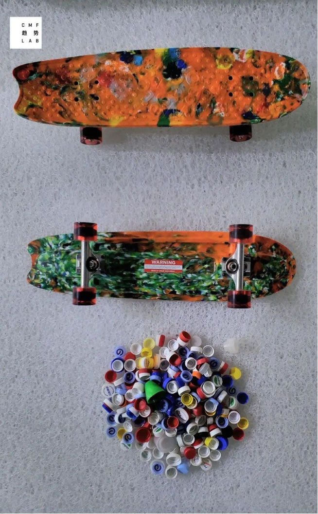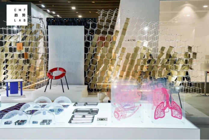 在「CMF趋势LAB-2023」特展上,由废弃塑料、固废物质以及海藻、果渣、蛋壳、贝壳等可再生生物质为原料生产而来的创新材料,在设计的巧妙构思之下摇身一变,成为各种家居物品。