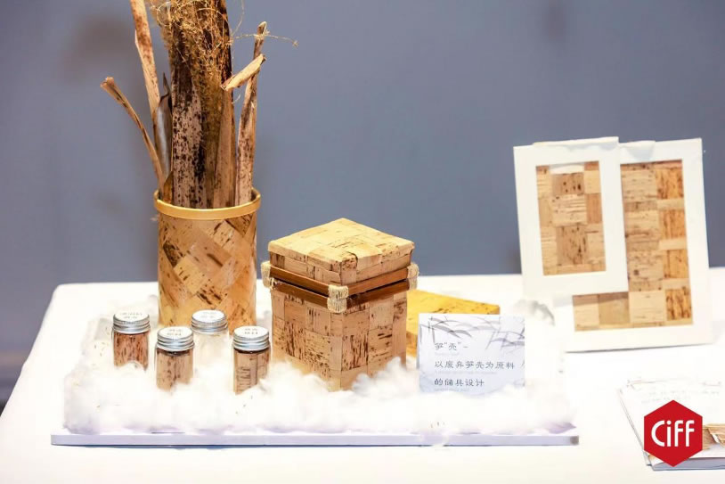 中华寻设计展上,以废弃笋壳为原料制作而来的各种储具,让我们看到了可持续材料发展应用的更多可能性,让设计在绿色与环保的路上不断前进。此外,记者还在展会现场看到废弃煤渣制成的地砖、以咖啡渣和编藤为原料制作的椅子等环保设计产品。