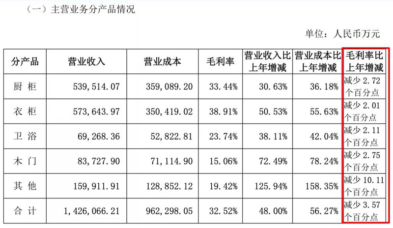 定制家居企业毛利率下滑