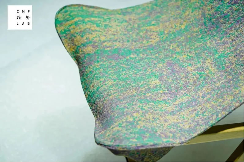 在「CMF趋势LAB-2023」特展上,由废弃塑料、固废物质以及海藻、果渣、蛋壳、贝壳等可再生生物质为原料生产而来的创新材料,在设计的巧妙构思之下摇身一变,成为各种家居物品。